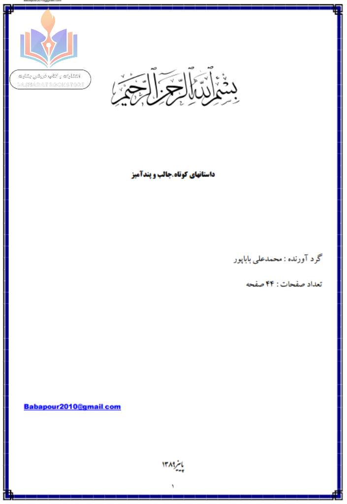 - «داستانهای کوتاه، جالب و پندآمیز» مجموعهای از روایتهای ساده اما تأثیرگذارند که در قالبی کوتاه، مفاهیم اخلاقی، انسانی و اجتماعی را منتقل میکنند. این داستانها اغلب با یک موقعیت روزمره آغاز میشوند و با پایانی غیرمنتظره، مخاطب را به تأمل و عبرت دعوت میکنند. شخصیتها معمولاً نمادهایی از فضیلت، خطا یا تحولاند. برخی داستانها با طنز همراهاند و از طریق شوخیهای ظریف، پیامهای عمیق اخلاقی را منتقل میکنند. برخی دیگر با لحنی جدی، به موضوعاتی چون صداقت، فداکاری، قضاوت نادرست یا غرور میپردازند. این روایتها برای آموزش کودکان، نوجوانان و حتی بزرگسالان بسیار مناسباند. در فرهنگهای مختلف، داستانهای پندآمیز نقش مهمی در انتقال ارزشها و تجربهها دارند. آنها پلی میان نسلها و ابزاری برای تربیت غیرمستقیماند. خواندن چنین داستانهایی، هم سرگرمکننده است و هم آموزنده. در نهایت، این داستانها یادآورند که گاهی یک جمله یا یک تصمیم ساده، میتواند مسیر زندگی را تغییر دهد.